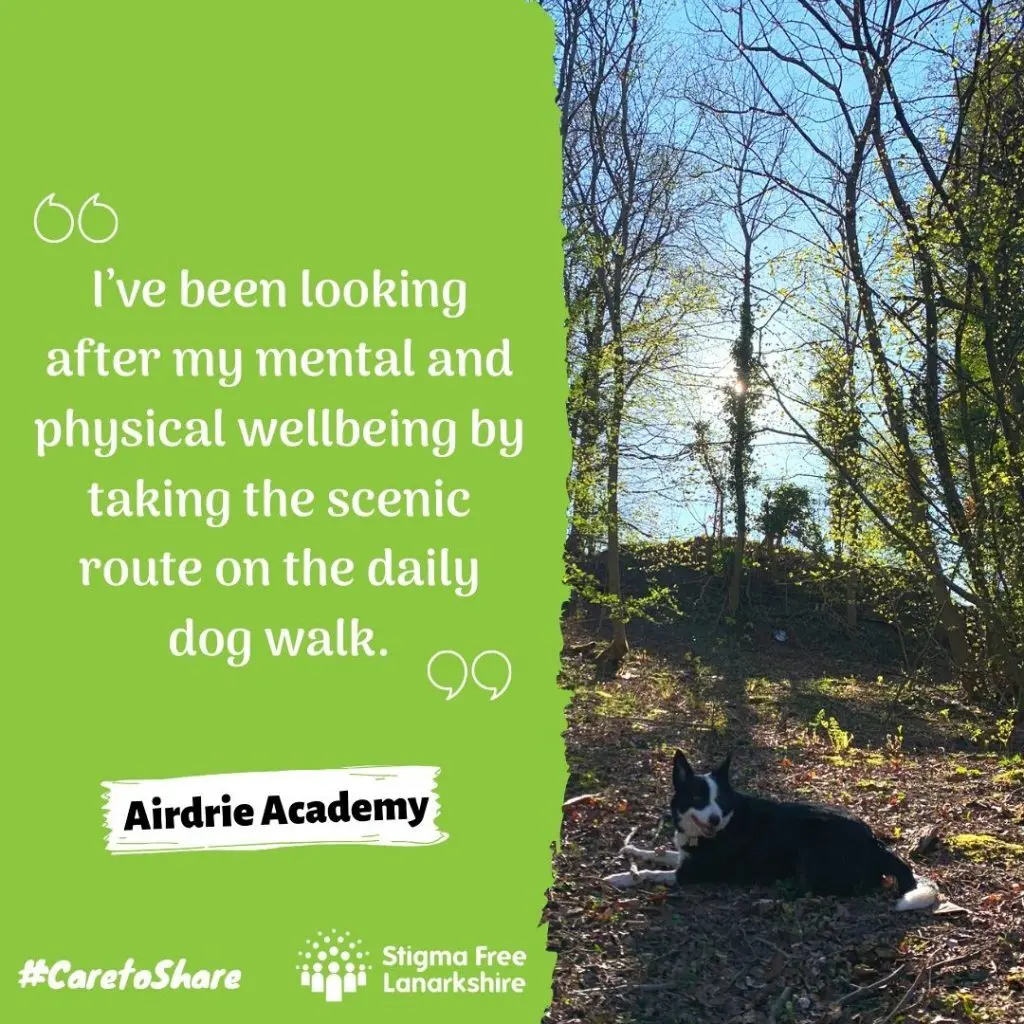 We would love to hear what YOU are doing to look after your mental health and to promote positive wellbeing during this time, anyone can get involved because we all have mental health and it’s okay to talk about it. Check out the gallery below to see our Care to Share submissions so far, you can also watch a fantastic video created by the teachers at St. Andrew’s and St. Bride’s High School. You can also check out our Care to Share resources page here, to find links to resources, videos, advice, and local groups in Lanarkshire that can support you to have good mental health.