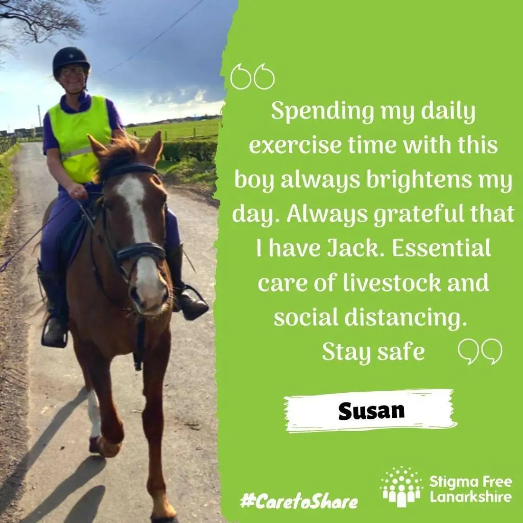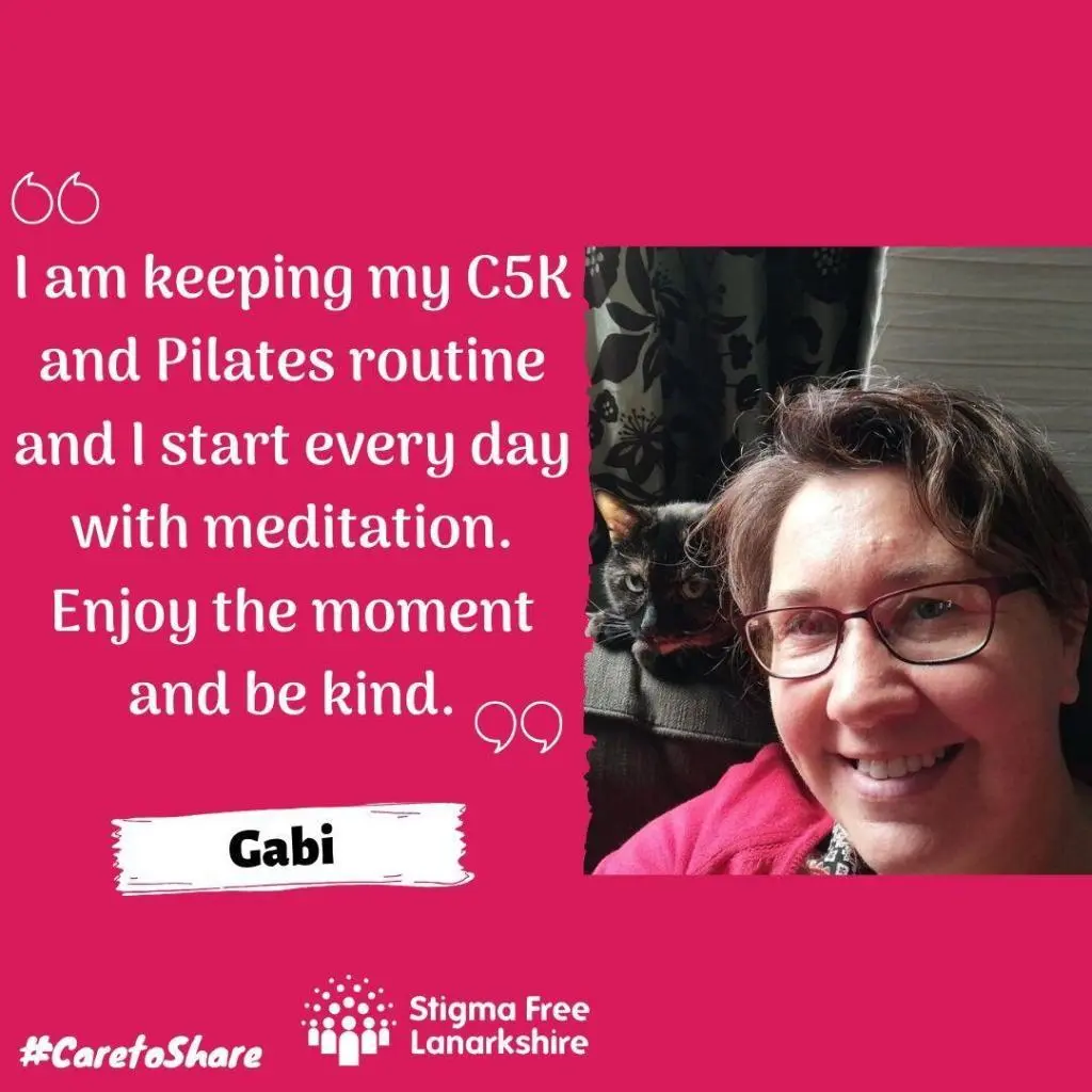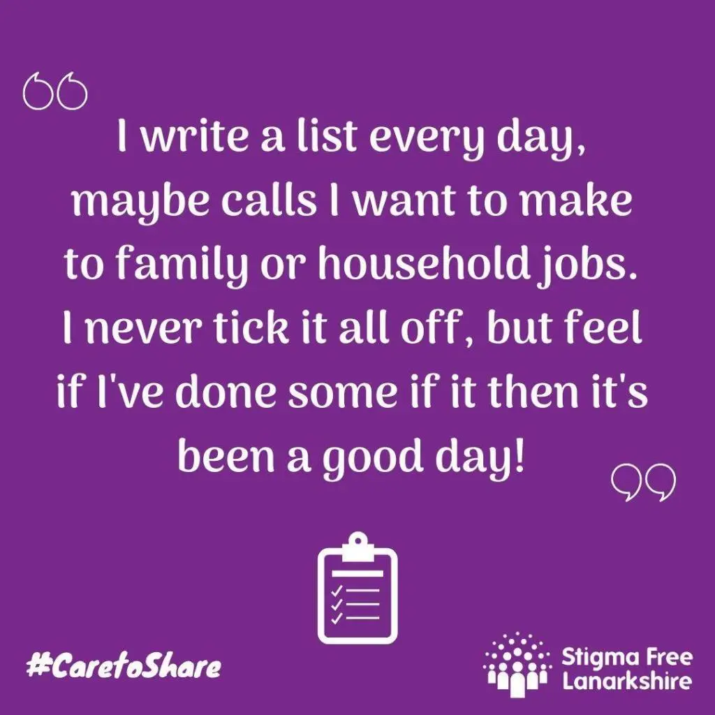 At the start of lockdown, it seemed like the news and social media was consumed by the current pandemic, which was distressing to see. People told us they wanted to hear positive things about mental health, as it is often spoken about from a negative viewpoint – thus Care to Share was born! Stigma Free Lanarkshire want to use our social media platform as a place of positivity, a place where we can connect with others and support each other during these difficult times. We want people to feel comfortable talking about mental health, and to show that we can talk about mental health in a positive way. By encouraging openness we can begin to normalise conversations around mental health and wellbeing. To be clear we are not asking people to disclose mental health issues and we will always provide signposting information to use or share.
