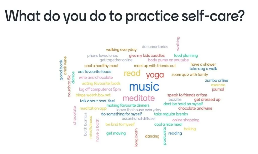 “I really enjoyed the digital whiteboard activity. Seeing other HI staff adding their responses made it feel more like a group activity than just answering some questions. It was also nice to see what others do for self-care”. Staff member